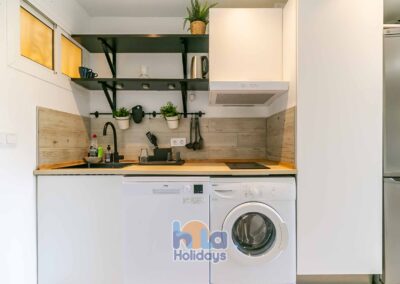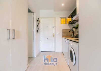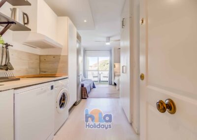 Es un apartamento recién reformado y amueblado totalmente, con todo el mobiliario nuevo a estrenar y ubicado en un lugar perfecto para llegar al centro de la ciudad, a las vías de comunicaciones y a los accesos a la playa. Posee una decoración sencilla pero con clase y todo un equipamiento que harán una estancia cómoda. Es muy luminoso por su terraza y cómodo. El apartamento se compone de una entrada con la zona de cocina al principio, donde bajo la encimera está la lavadora, lavavajillas y fregadero. Tiene vitrocerámica, extractor, frigorífico, microondas, cafetera, hervidor y menaje completo, todo totalmente nuevo.