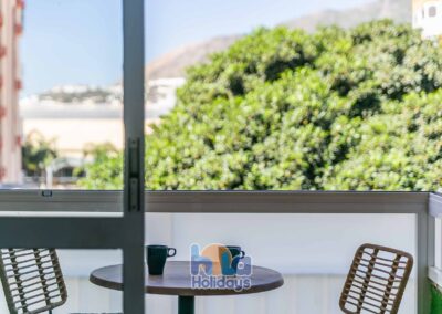 Posee una decoración sencilla pero funcional y todo un equipamiento que harán una estancia cómoda. Es muy luminoso por balcón grande y acristalado, muy cómodo con un espacio suficiente para 4 personas, parejas o padres con niños.