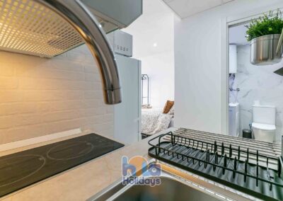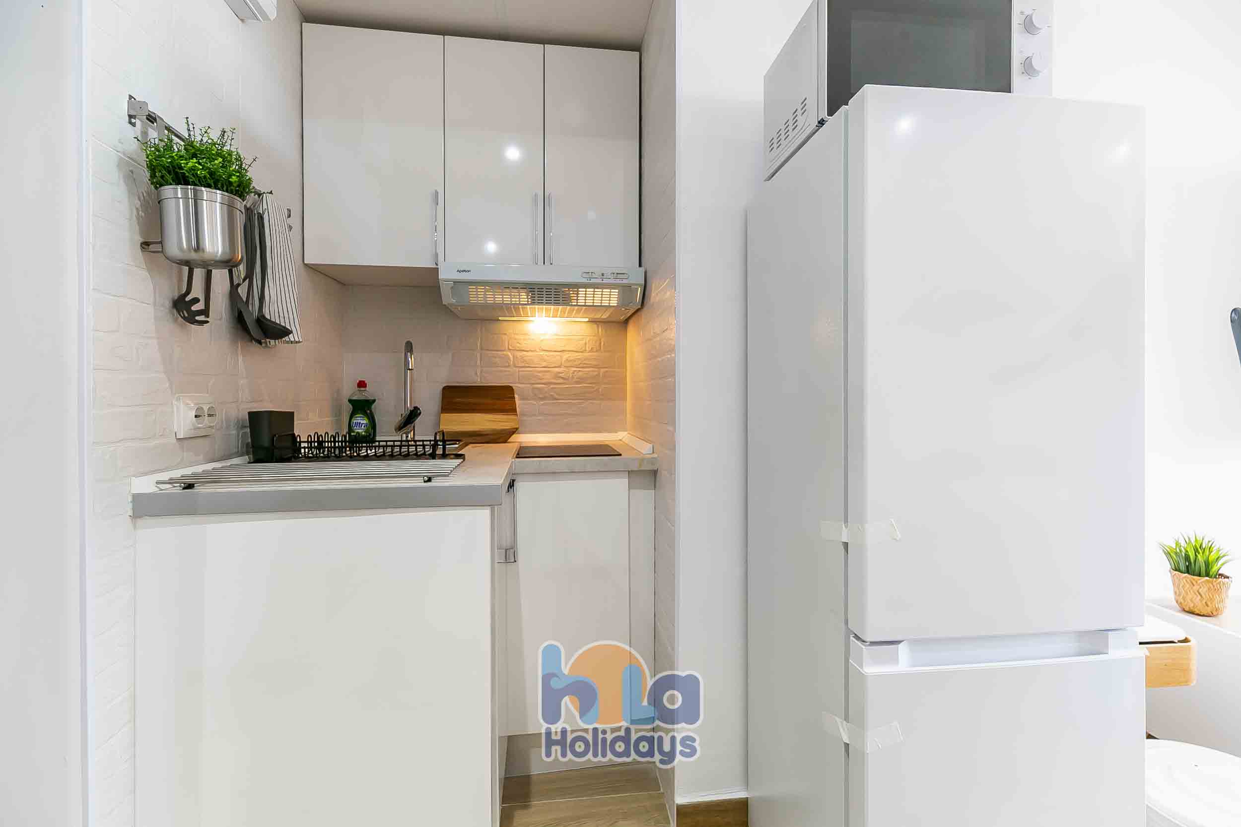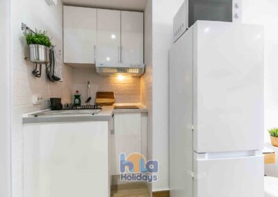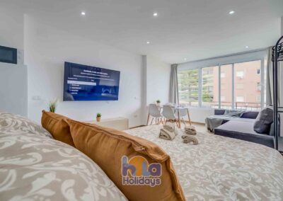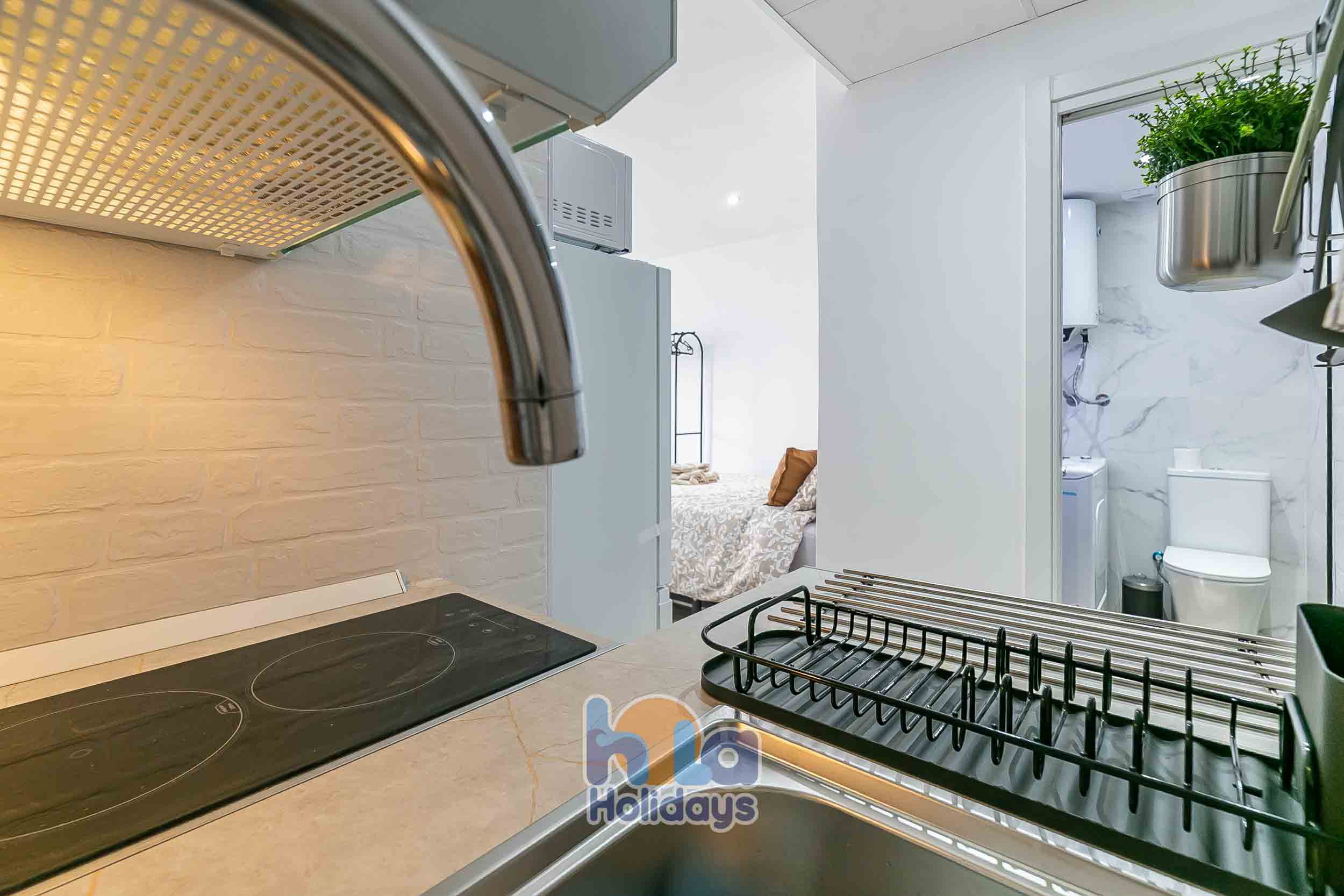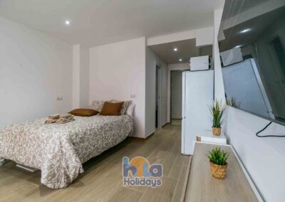 Posee una decoración sencilla pero con clase y todo un equipamiento que harán una estancia cómoda. Es muy luminoso por su gran ventanal y cómodo con un espacio suficiente para 4 personas, parejas o padres con niños.